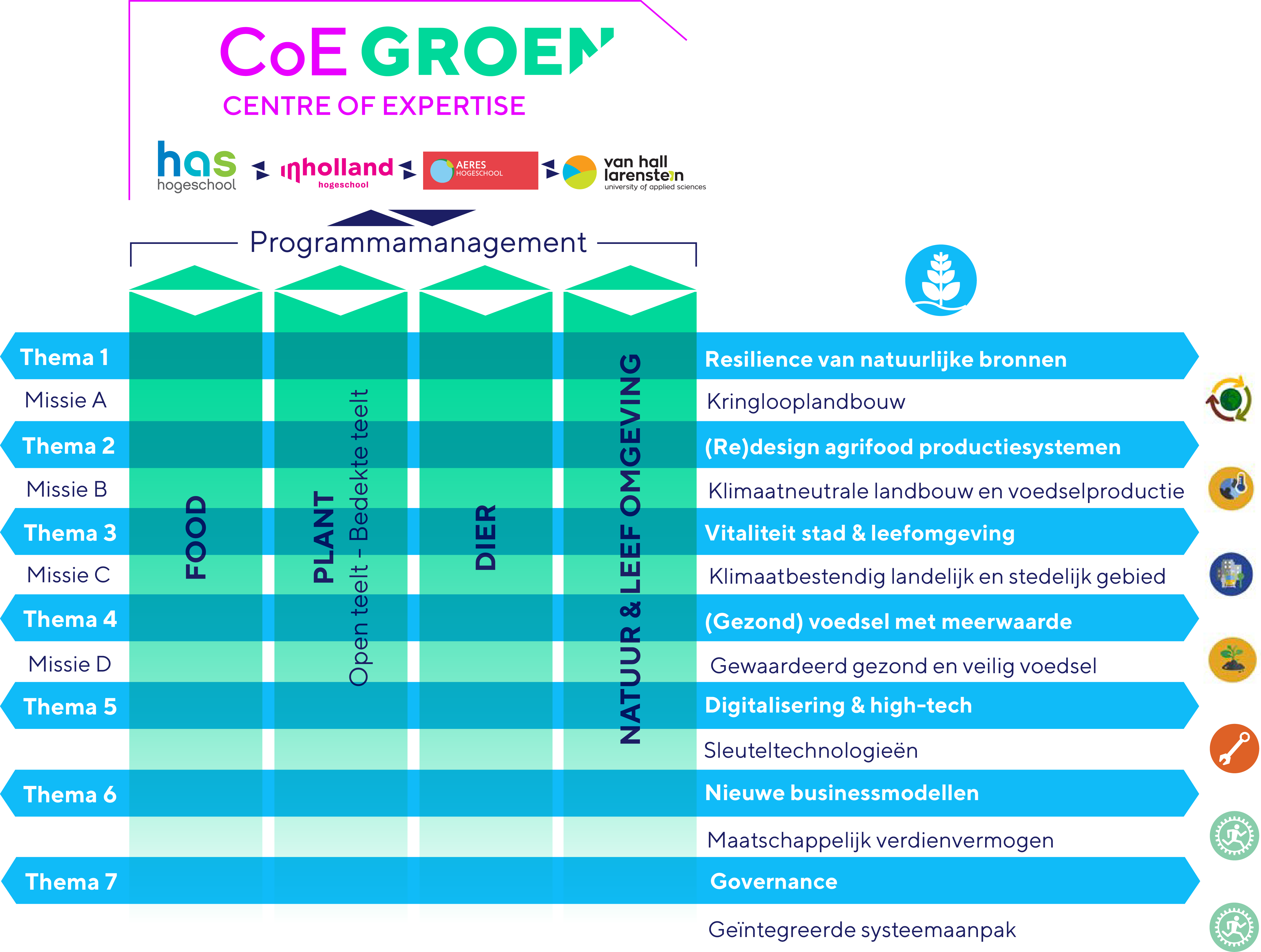Er zijn 7 thema’s waar het CoE Groen een betekenisvolle bijdrage aan levert.