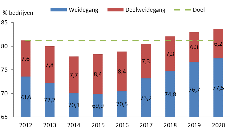 In 2012 heeft de melkveesector het Convenant Weidegang afgesloten. Inmiddels hebben meer dan 80 partijen uit de gehele zuivelketen dit Convenant ondertekend. Sinds 2015 neemt beweiding weer toe (zie figuren).